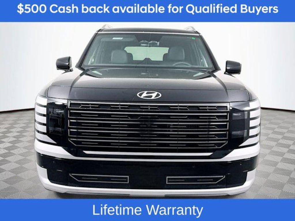 Includes:Option Group 01, 100W Charging Cable, 14 Speakers, 3rd row seats: split-bench, 4-Wheel Disc Brakes, ABS brakes, Air Conditioning, Alloy wheels, AM/FM radio: SiriusXM, Apple CarPlay & Android Auto, Audio memory, Auto High-beam Headlights, Auto-dimming door mirrors, Auto-dimming Rear-View mirror, Auto-leveling suspension, Automatic temperature control, Brake assist, Bumpers: body-color, Cargo Cover, Cargo Net, Cargo Tray, Carpeted Floor Mats, Compass, Delay-off headlights, Driver door bin, Driver vanity mirror, Dual front impact airbags, Dual front side impact airbags, Electronic Stability Control, Emergency communication system: None, Exterior Parking Camera Rear, First Aid Kit, Four wheel independent suspension, Front anti-roll bar, Front Bucket Seats, Front Center Armrest, Front dual zone A/C, Front reading lights, Fully automatic headlights, Garage door transmitter: HomeLink, Genuine wood console insert, Genuine wood dashboard insert, Heads-Up Display, Heated and Ventilated Front Bucket Seats, Heated door mirrors, Heated front seats, Heated rear seats, Heated steering wheel, HVAC memory, Illuminated entry, Knee airbag, Leather steering wheel, Low tire pressure warning, Memory seat, Navigation System, Occupant sensing airbag, Outside temperature display, Overhead airbag, Overhead console, Panic alarm, Passenger door bin, Passenger vanity mirror, Power door mirrors, Power driver seat, Power Liftgate, Power moonroof, Power passenger seat, Power steering, Power windows, Premium Nappa Leather Seat Trim, Radio data system, Radio: Infotainment Navigation System, Rain sensing wipers, Rear air conditioning, Rear anti-roll bar, Rear audio controls, Rear reading lights, Rear side impact airbag, Rear window defroster, Rear window wiper, Reclining 3rd row seat, Remote keyless entry, Security system, Speed control, Split folding rear seat, Spoiler, Steering wheel mounted audio controls, Tachometer, Telescoping steering wheel, Tilt steering wheel, Traction control, Trip computer, Turn signal indicator mirrors, Variably intermittent wipers, Ventilated front seats, Ventilated rear seats, and Wheels: 21" x 8.5J Alloy. Not all customers may qualify for all rebates listed, see dealer for details. Price includes: $500 - Hyundai HMF Dealer Choice : $500 discount and 5.39% APR for 24 months. $44.05 per $1000 financed. Available to well qualified buyers who finance through Hyundai Motor Finance. H704. Exp. 03/02/2026