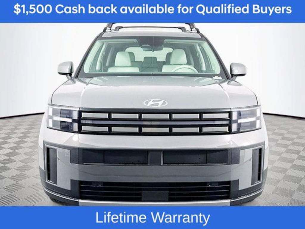 Includes:Option Group 01, 18" x 7.5J Alloy Wheels, 3rd row seats: bench, 4-Wheel Disc Brakes, 6 Speakers, ABS brakes, Air Conditioning, Alloy wheels, AM/FM radio: SiriusXM, Apple CarPlay & Android Auto, Auto High-beam Headlights, Automatic temperature control, Brake assist, Bumpers: body-color, Cargo Cover/Screen, Cargo Net, Carpeted Floor Mats, Delay-off headlights, Driver door bin, Driver vanity mirror, Dual front impact airbags, Dual front side impact airbags, Electronic Stability Control, Emergency communication system, Exterior Parking Camera Rear, First Aid Kit, Four wheel independent suspension, Front anti-roll bar, Front Bucket Seats, Front Center Armrest, Front dual zone A/C, Front reading lights, Fully automatic headlights, H-Tex Leatherette Seat Trim, Heated door mirrors, Heated Front Bucket Seats, Heated front seats, Illuminated entry, Knee airbag, Leather steering wheel, Low tire pressure warning, Occupant sensing airbag, Outside temperature display, Overhead airbag, Overhead console, Panic alarm, Passenger door bin, Passenger vanity mirror, Power door mirrors, Power driver seat, Power Liftgate, Power steering, Power windows, Radio: AM/FM/HD Display Audio, Rear anti-roll bar, Rear seat center armrest, Rear side impact airbag, Rear window defroster, Rear window wiper, Remote keyless entry, Roof Rack Crossbars, Security system, Speed control, Speed-sensing steering, Split folding rear seat, Spoiler, Steering wheel mounted audio controls, Tachometer, Telescoping steering wheel, Tilt steering wheel, Traction control, Trip computer, Turn signal indicator mirrors, and Variably intermittent wipers. Not all customers may qualify for all rebates listed, see dealer for details. Price includes: $3500 - Hyundai HMF Dealer Choice : $3500 discount and 5.39% APR for 24 months. $44.05 per $1000 financed. Available to well qualified buyers who finance through Hyundai Motor Finance. H704. Exp. 03/02/2026