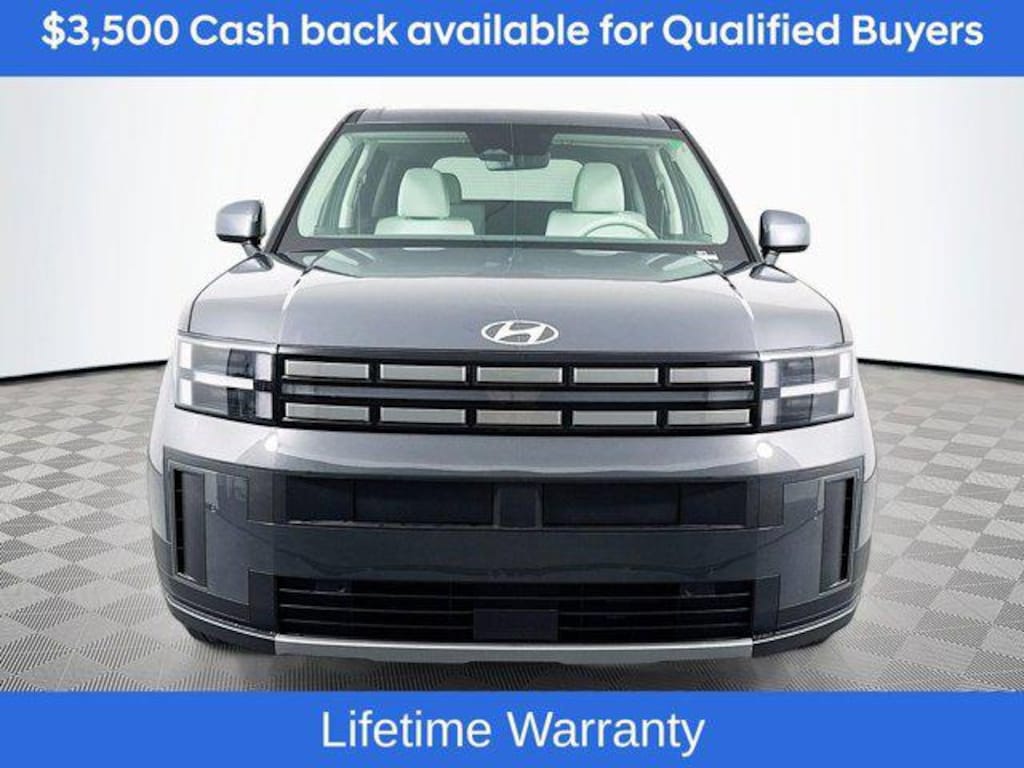 Includes:18" x 7.5J Alloy Wheels, 3rd row seats: bench, 4-Wheel Disc Brakes, 6 Speakers, ABS brakes, Air Conditioning, Alloy wheels, AM/FM radio: SiriusXM, Apple CarPlay & Android Auto, Auto High-beam Headlights, Brake assist, Bumpers: body-color, Delay-off headlights, Driver door bin, Driver vanity mirror, Dual front impact airbags, Dual front side impact airbags, Electronic Stability Control, Emergency communication system, Exterior Parking Camera Rear, Four wheel independent suspension, Front anti-roll bar, Front Bucket Seats, Front Center Armrest, Front reading lights, Fully automatic headlights, Heated door mirrors, Illuminated entry, Knee airbag, Leather steering wheel, Low tire pressure warning, Occupant sensing airbag, Outside temperature display, Overhead airbag, Overhead console, Panic alarm, Passenger door bin, Passenger vanity mirror, Power door mirrors, Power Liftgate, Power steering, Power windows, Radio: AM/FM/HD Display Audio, Rear anti-roll bar, Rear seat center armrest, Rear side impact airbag, Rear window defroster, Rear window wiper, Remote keyless entry, Security system, Speed control, Speed-sensing steering, Split folding rear seat, Spoiler, Steering wheel mounted audio controls, Tachometer, Telescoping steering wheel, Tilt steering wheel, Traction control, Trip computer, Variably intermittent wipers, and YES Essentials Stain-Resistant Cloth Seat Trim. Not all customers may qualify for all rebates listed, see dealer for details. Price includes: $3500 - Hyundai HMF Dealer Choice : $3500 discount and 5.39% APR for 24 months. $44.05 per $1000 financed. Available to well qualified buyers who finance through Hyundai Motor Finance. H704. Exp. 03/02/2026