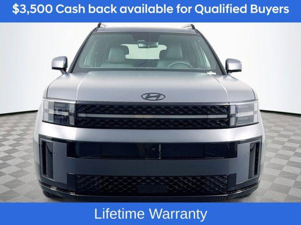 Includes:Option Group 01, 12 Speakers, 3rd row seats: bench, 4-Wheel Disc Brakes, ABS brakes, Air Conditioning, Alloy wheels, AM/FM radio: SiriusXM, Apple CarPlay & Android Auto, Auto High-beam Headlights, Auto-dimming Rear-View mirror, Automatic temperature control, Brake assist, Bumpers: body-color, Cargo Net, Carpeted Floor Mats, Delay-off headlights, Driver door bin, Driver vanity mirror, Dual front impact airbags, Dual front side impact airbags, Electronic Stability Control, Emergency communication system, Exterior Parking Camera Rear, Four wheel independent suspension, Front anti-roll bar, Front Bucket Seats, Front Center Armrest, Front dual zone A/C, Front reading lights, Fully automatic headlights, Garage door transmitter: HomeLink, Heads-Up Display, Heated and Ventilated Front Bucket Seats, Heated door mirrors, Heated front seats, Heated rear seats, Heated steering wheel, Illuminated entry, Knee airbag, Leather steering wheel, Low tire pressure warning, Memory seat, Navigation System, Occupant sensing airbag, Outside temperature display, Overhead airbag, Overhead console, Panic alarm, Passenger door bin, Passenger vanity mirror, Power door mirrors, Power driver seat, Power Liftgate, Power moonroof, Power passenger seat, Power steering, Power windows, Quilted Premium Nappa Leather Seat Trim, Radio: AM/FM/HD Bose Premium Audio System, Rain sensing wipers, Rear anti-roll bar, Rear side impact airbag, Rear window defroster, Rear window wiper, Remote keyless entry, Security system, Side Steps, Speed control, Speed-sensing steering, Split folding rear seat, Spoiler, Steering wheel mounted audio controls, Tachometer, Telescoping steering wheel, Tilt steering wheel, Traction control, Trip computer, Turn signal indicator mirrors, Variably intermittent wipers, Ventilated front seats, and Wheels: 21" x 8.5J Unique Dark Finish Alloy. Not all customers may qualify for all rebates listed, see dealer for details. Price includes: $3500 - Hyundai HMF Dealer Choice : $3500 discount and 5.49% APR for 24 months. $44.09 per $1000 financed. Available to well qualified buyers who finance through Hyundai Motor Finance. H704. Exp. 01/02/2026