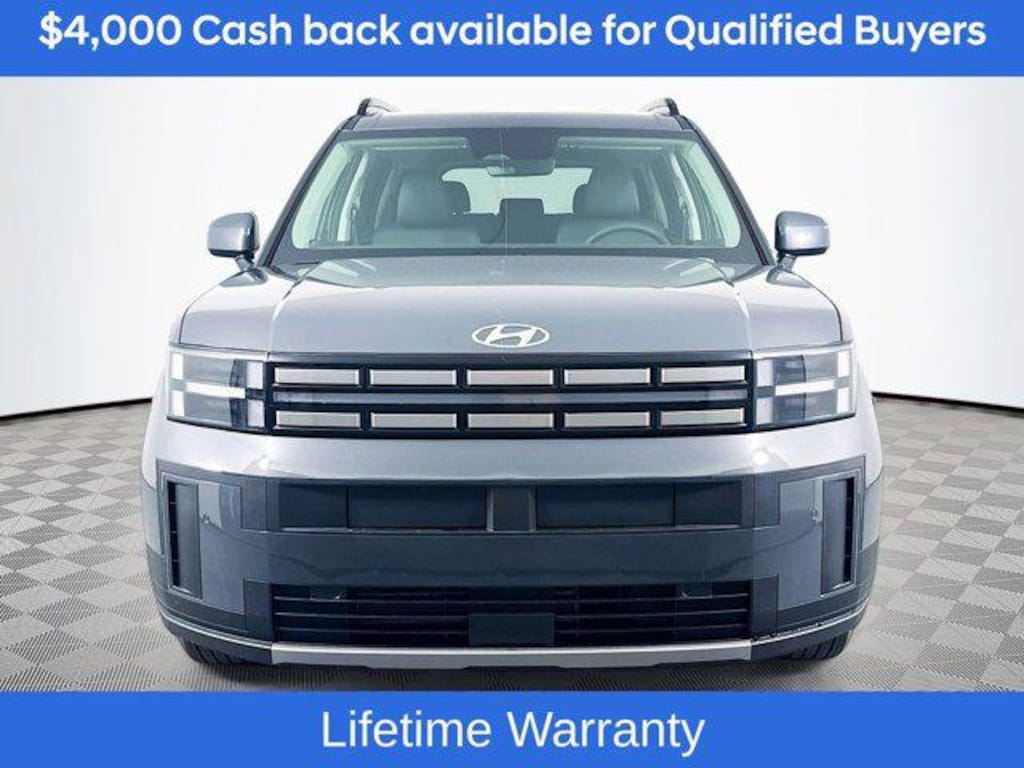 Includes:Option Group 01, 18" x 7.5J Alloy Wheels, 3rd row seats: bench, 4-Wheel Disc Brakes, 6 Speakers, ABS brakes, Air Conditioning, Alloy wheels, AM/FM radio: SiriusXM, Apple CarPlay & Android Auto, Auto High-beam Headlights, Automatic temperature control, Brake assist, Bumpers: body-color, Carpeted Floor Mats, Delay-off headlights, Driver door bin, Driver vanity mirror, Dual front impact airbags, Dual front side impact airbags, Electronic Stability Control, Emergency communication system, Exterior Parking Camera Rear, Four wheel independent suspension, Front anti-roll bar, Front Bucket Seats, Front Center Armrest, Front dual zone A/C, Front reading lights, Fully automatic headlights, H-Tex Leatherette Seat Trim, Heated door mirrors, Heated Front Bucket Seats, Heated front seats, Illuminated entry, Knee airbag, Leather steering wheel, Low tire pressure warning, Occupant sensing airbag, Outside temperature display, Overhead airbag, Overhead console, Panic alarm, Passenger door bin, Passenger vanity mirror, Power door mirrors, Power driver seat, Power Liftgate, Power steering, Power windows, Radio: AM/FM/HD Display Audio, Rear anti-roll bar, Rear seat center armrest, Rear side impact airbag, Rear window defroster, Rear window wiper, Remote keyless entry, Security system, Speed control, Speed-sensing steering, Split folding rear seat, Spoiler, Steering wheel mounted audio controls, Tachometer, Telescoping steering wheel, Tilt steering wheel, Traction control, Trip computer, Turn signal indicator mirrors, and Variably intermittent wipers. Not all customers may qualify for all rebates listed, see dealer for details. Price includes: $4000 - Hyundai HMF Dealer Choice : $4000 discount and 5.39% APR for 24 months. $44.05 per $1000 financed. Available to well qualified buyers who finance through Hyundai Motor Finance. H704. Exp. 03/31/2026