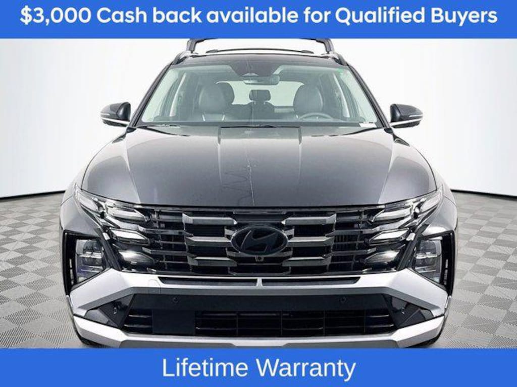 Includes:Option Group 01, 4-Wheel Disc Brakes, 8 Speakers, ABS brakes, Air Conditioning, Alloy wheels, AM/FM radio: SiriusXM, Apple CarPlay & Android Auto, Auto High-beam Headlights, Auto-dimming Rear-View mirror, Automatic temperature control, Brake assist, Bumpers: body-color, Cargo Cover, Cargo Net, Cargo Tray, Carpeted Floor Mats, Delay-off headlights, Driver door bin, Driver vanity mirror, Dual front impact airbags, Dual front side impact airbags, Electronic Stability Control, Emergency communication system: Bluelink+, First Aid Kit, Four wheel independent suspension, Front anti-roll bar, Front Bucket Seats, Front Center Armrest, Front dual zone A/C, Front reading lights, Fully automatic headlights, Garage door transmitter: HomeLink, Heads-Up Display, Heated & Ventilated Front Bucket Seats, Heated door mirrors, Heated front seats, Heated rear seats, Heated steering wheel, Illuminated entry, Leather steering wheel, Leather-Trimmed Seat Trim, Low tire pressure warning, Memory seat, Navigation System, Occupant sensing airbag, Outside temperature display, Overhead airbag, Overhead console, Panic alarm, Passenger door bin, Passenger vanity mirror, Power door mirrors, Power driver seat, Power Liftgate, Power moonroof, Power passenger seat, Power steering, Power windows, Radio data system, Radio: Bose Premium w/AM/FM/HD Audio System, Rain sensing wipers, Rear anti-roll bar, Rear reading lights, Rear seat center armrest, Rear side impact airbag, Rear window defroster, Rear window wiper, Remote keyless entry, Roof Rack Cross Rails, Security system, Speed control, Split folding rear seat, Spoiler, Steering wheel mounted audio controls, Tachometer, Telescoping steering wheel, Tilt steering wheel, Traction control, Trip computer, Turn signal indicator mirrors, Variably intermittent wipers, Ventilated front seats, and Wheels: 19" x 7.5J Alloy. Not all customers may qualify for all rebates listed, see dealer for details. Price includes: $3000 - Hyundai HMF Dealer Choice : $3000 discount and 5.49% APR for 24 months. $44.09 per $1000 financed. Available to well qualified buyers who finance through Hyundai Motor Finance. H704. Exp. 01/02/2026